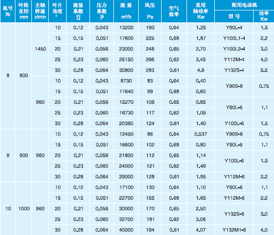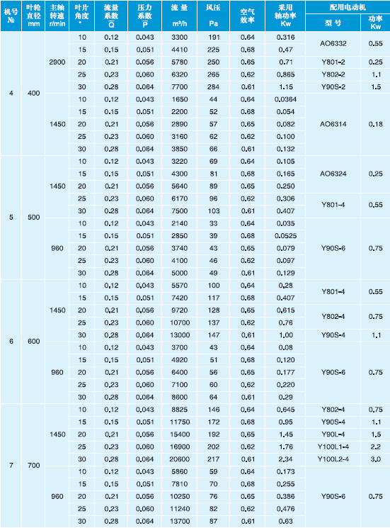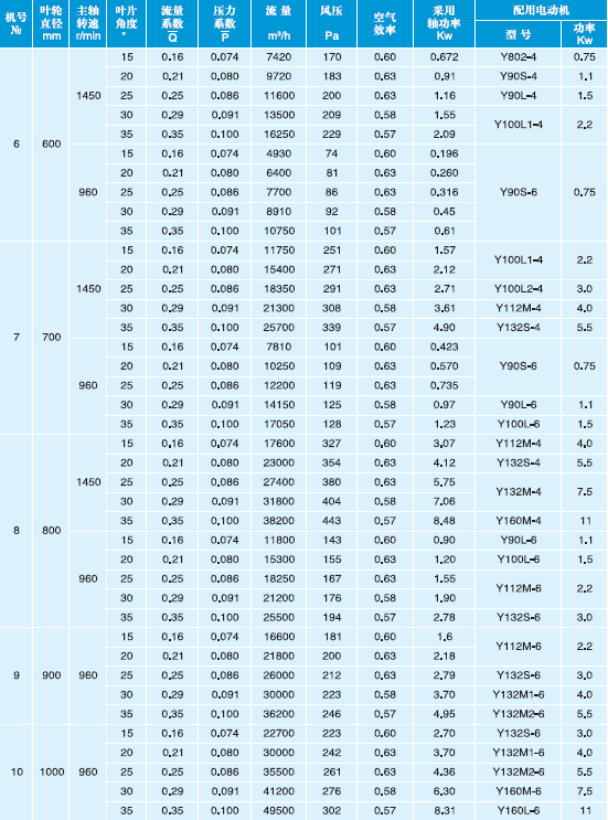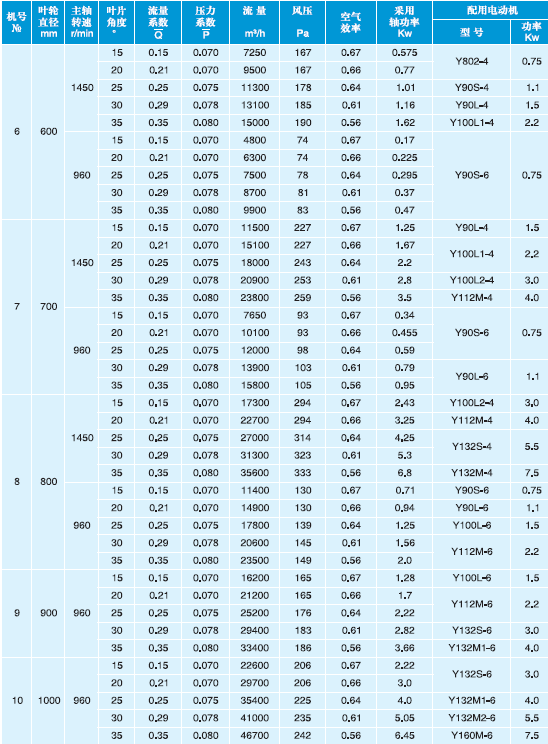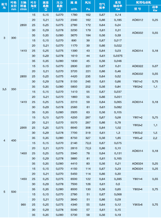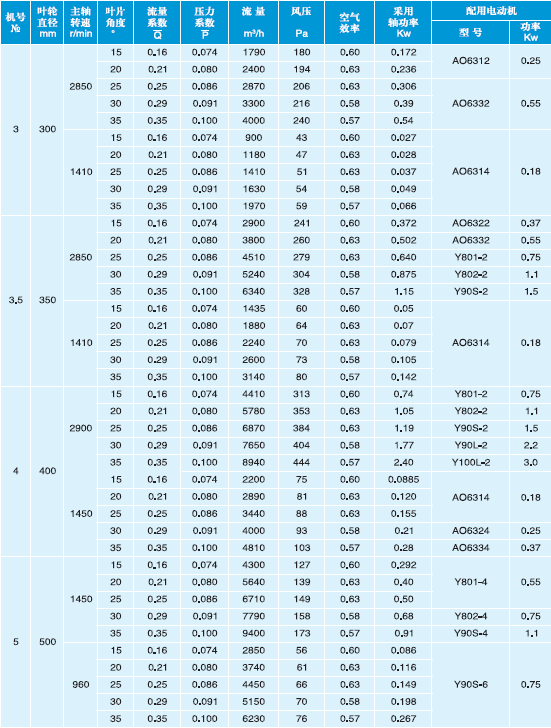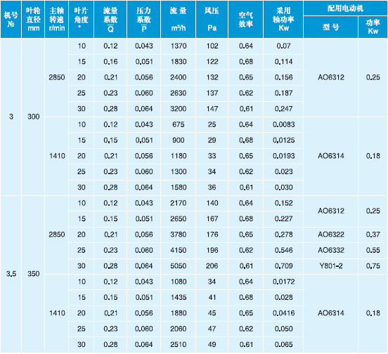 T30型軸流通風機性能與選用件表