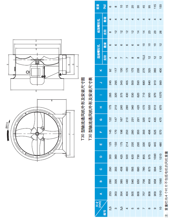 T30(原稱03-11或30K4)型軸流通風機是一種機構簡單,噪聲小的低壓軸流通風機。可用作廠房、倉庫、辦公室、住宅通風換氣,或將強暖氣散熱之用。若將風殼去掉,亦可作為自由風扇。也可在較長的排氣管道內,間隔串聯安裝,以提高管道中的全壓。