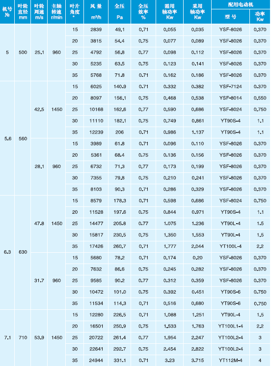T35型軸流通風(fēng)機(jī)的主要目的是替代30K4型,和國外同類產(chǎn)品進(jìn)行分析對(duì)比,通過模型試驗(yàn)研究,確定了風(fēng)機(jī)翼型,采用了圓筒型輪轂結(jié)構(gòu),電機(jī)進(jìn)行了改型設(shè)計(jì),結(jié)構(gòu)上減少了流動(dòng)損失,因而使風(fēng)機(jī)效率出口,按圓面積計(jì)算提高到77%,按出口環(huán)面積計(jì)算提高到89.5%,噪聲比A聲降低了3.6dB,又增強(qiáng)了葉根處的強(qiáng)度,避免了葉片斷裂現(xiàn)象。